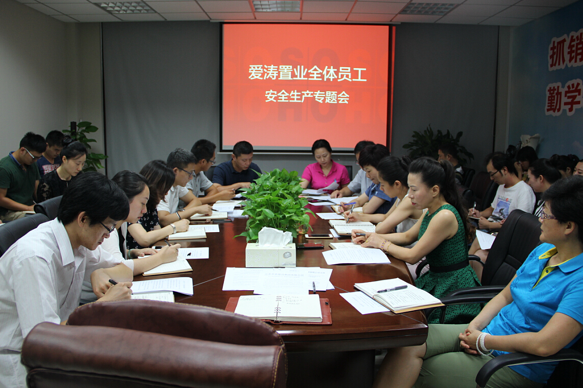 8月27日下午,愛濤置業(yè)公司安全檢查小組召開關于進一步加強安全生產工作的專題會。會議認真?zhèn)鬟_學習了控股集團、建設集團下發(fā)的關于進一步加強安全生產工作的通知要求,并簽署了安全生產管理責任承諾書和安全生產個人責任承諾書。愛濤置業(yè)公司總經(jīng)理及安全生產檢查小組各成員分別就分管區(qū)域擬定了近期計劃和工作部署,會議針對安全生產、安全檢查、安全責任等,要求從總經(jīng)理到各項目、各部門、各專業(yè)板塊以及各具體執(zhí)行人員,形成逐級落實、層層負責的體系,以“零容忍”的態(tài)度,讓安全生產意識扎根每位員工心中,真正形成長效機制,通過自檢、互檢、限期整改等多種方式,堅決防范和遏制安全事故。